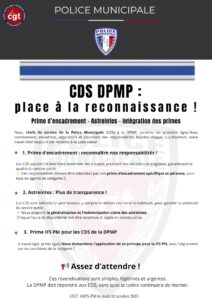 CDS DPMP : Place à la reconnaissance ! Prime d’encadrement – Astreintes – Intégration des primes